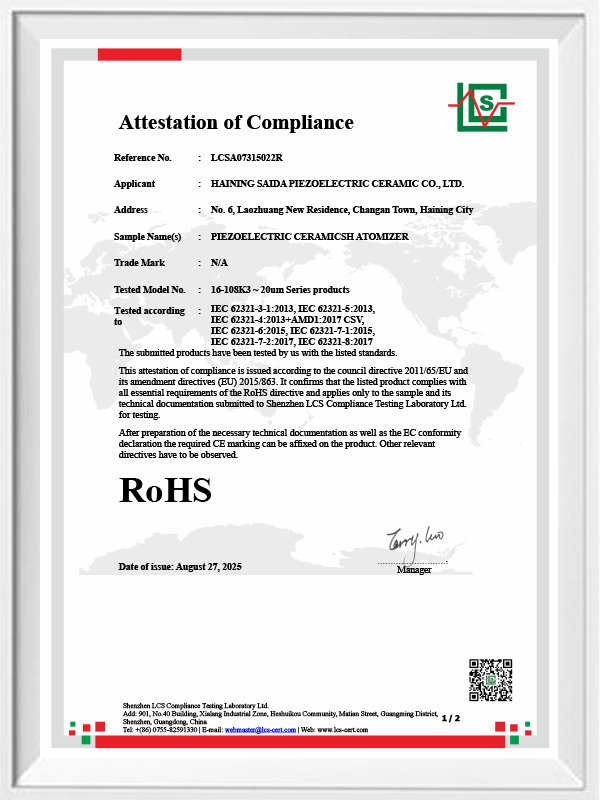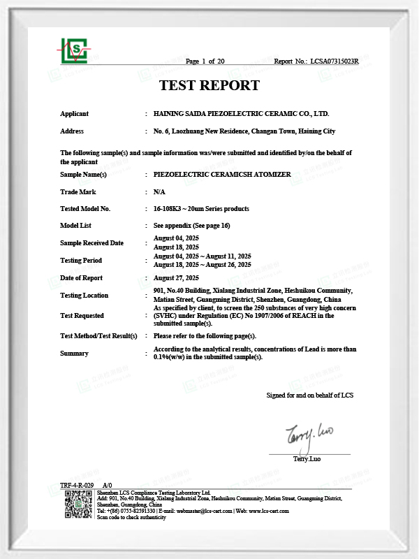 Loodvrij piëzo-elektrisch keramiek staat bekend als de "parel" van de piëzo-elektrische industrie. De toekomst zal geleidelijk het op lood gebaseerde piëzo-elektrische keramiek in alle aspecten vervangen, dat al dezelfde piëzo-elektrische prestaties heeft, en op lood gebaseerde piëzo-elektrische platen. Het is volledig niet-giftig, onschadelijk, veilig en milieuvriendelijk, bevat geen lood, antimoon en andere zware metalen en andere Rohs-beperkte elementen, hoge Curie-temperatuur Tc-328 ° C, zeer laag elektrisch verlies TangentLoss Daarom heeft de loodvrije piëzo-elektrische medische verstuivingschip een grote commerciële waarde en universele waarde, echt niet-giftig en milieuvriendelijk, loodvrij piëzo-elektrische keramiek, naast niet-vervuilende, piëzo-elektrische prestaties die evenredig zijn met op lood gebaseerde keramiek, zal een populaire milieuvriendelijke piëzo-elektrische keramiek worden. Na jaren van onderzoek en ontwikkeling, na voortdurend testen en experimenteren, is het bedrijf erin geslaagd de loodvrije medische verstuivingschip te maken die dezelfde mate van verneveling bereikt als de op lood gebaseerde verstuivingschip, en dezelfde deeltjesvereisten met betrekking tot de diameter. Loodvrije medische Mesh-vernevelaarchip, zal zeker schitteren en een breed scala aan gebruiksscenario's krijgen.
